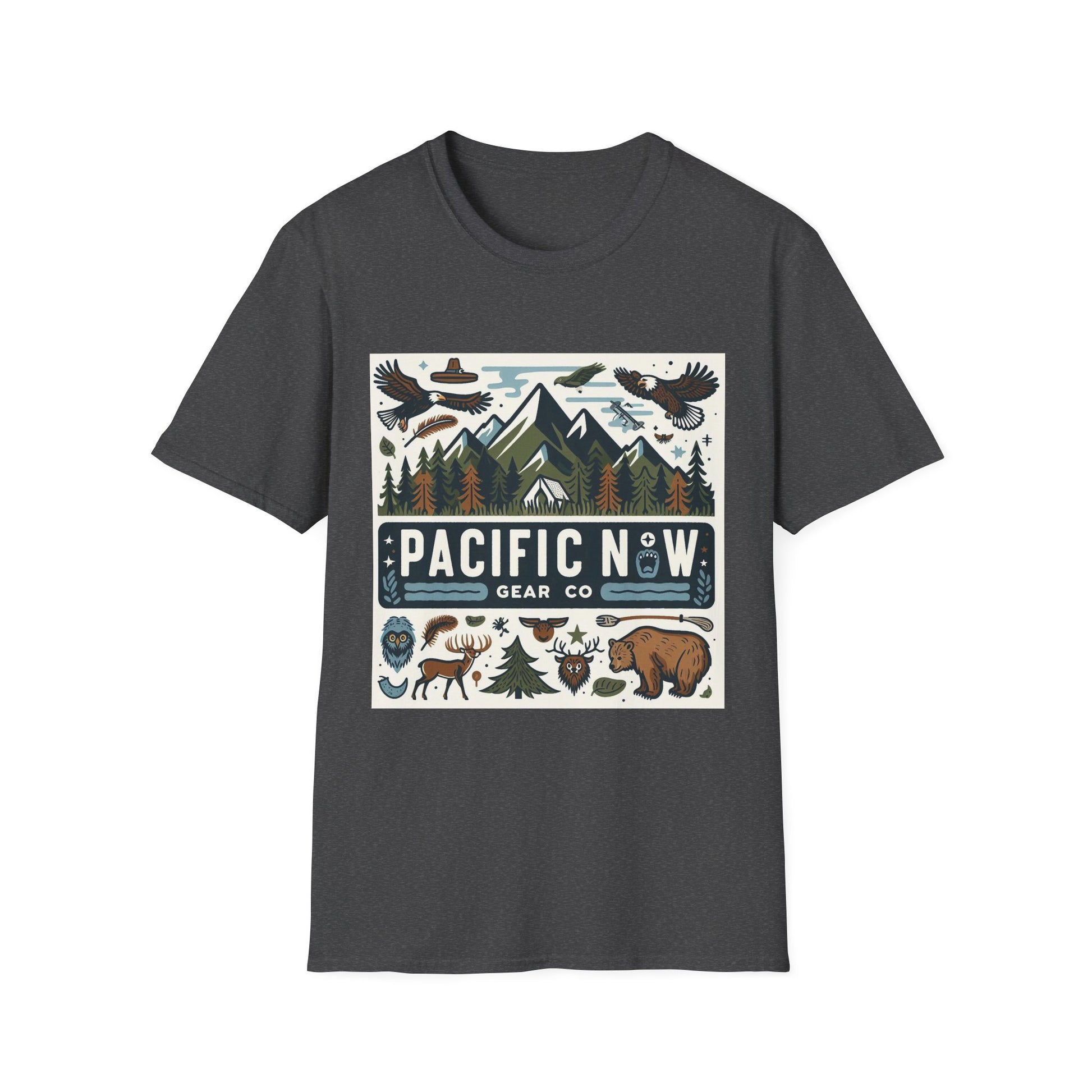 Fuel your wanderlust with the Pacific Adventure Tee by Pacific NW Gear Co. This unisex softstyle t-shirt features a captivating retro mountain design, perfect for nature lovers, outdoor enthusiasts, and anyone who dreams of exploring the wild.